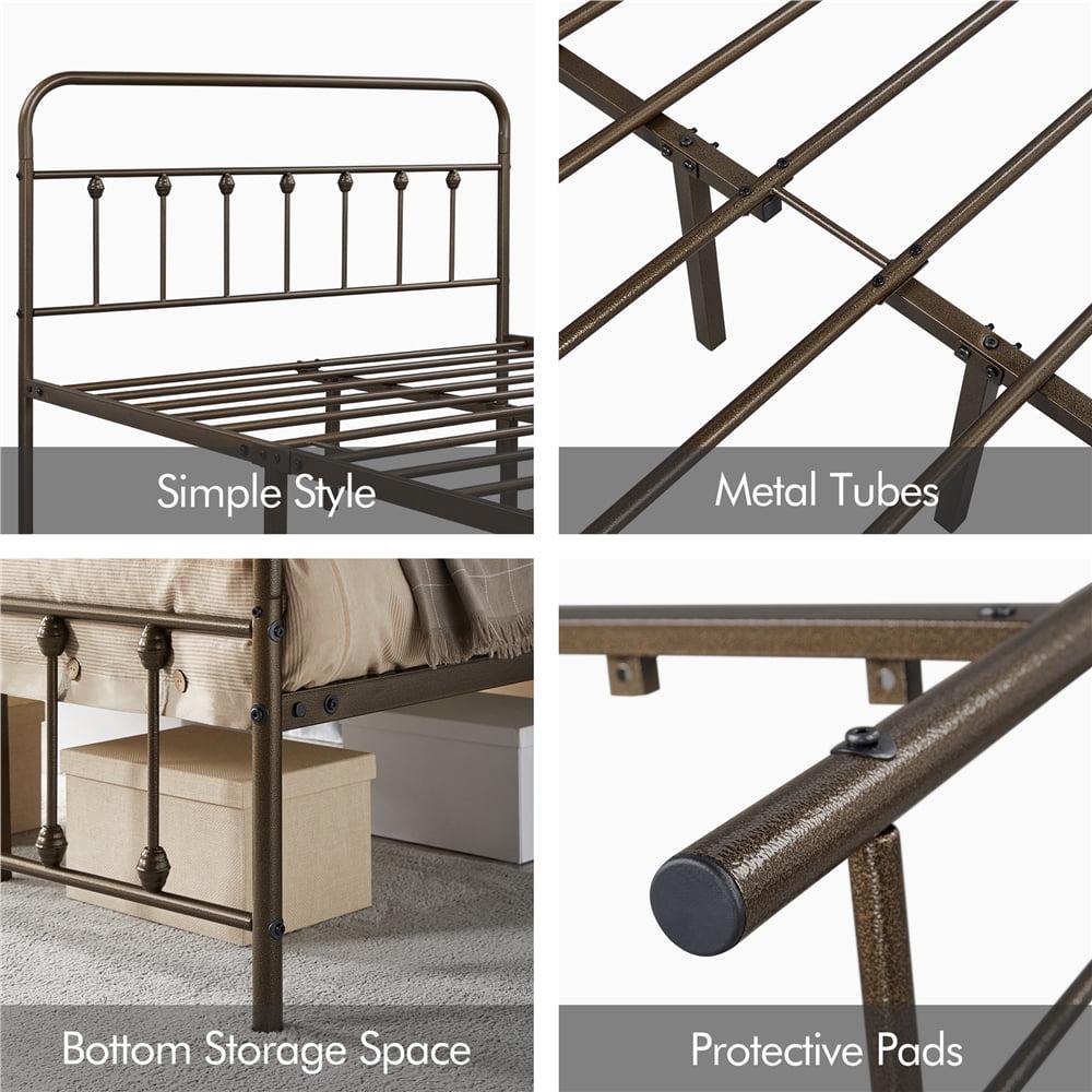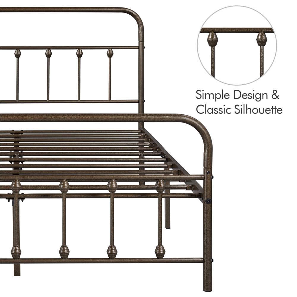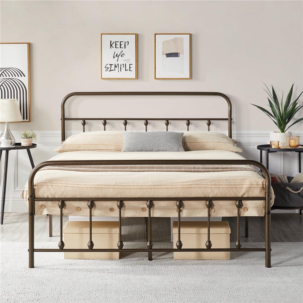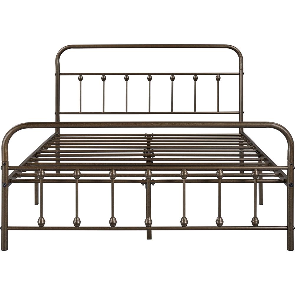– Alden Design Metal Queen Bed with High Headboard and Footboard, Bronze: