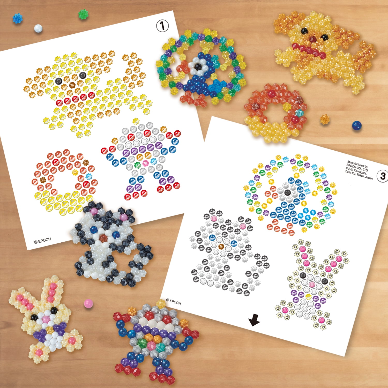 Aquabeads Deluxe Craft Backpack is a water fuse bead set, allowing for independent play by children that doesn’t require needles or ironing! This complete craft kit includes everything your child needs to create unique bead designs, from cute animals to colorful rainbows and wearable designs. Set features over 1,000 solid, jewel and star beads in a variety of vibrant colors including new shiny beads! Includes innovative flip tray, sprayer, double-sided bead pen and bead palette that doubles as a storage case with straps and carry handle. To start crafting, select your template and place the sheet underneath the flip tray, aligning the beads to the spacing on the tray. Follow the template to place the beads on the tray until the template is covered. Spray with water to fuse the beads together and finish your design! Fill the sprayer with water and spray the design thoroughly. Immediately after spraying, flip the tray to transfer the design to the reciever for drying. Continue to create more bead designs quicker with the flip tray set, and display or wear your designs with the included creation base and wearable bases! Keep expanding your Aquabeads collection with theme refills and bead refills. Visit aquabeadsart.com for more templates, including fun themes & seasonal designs.