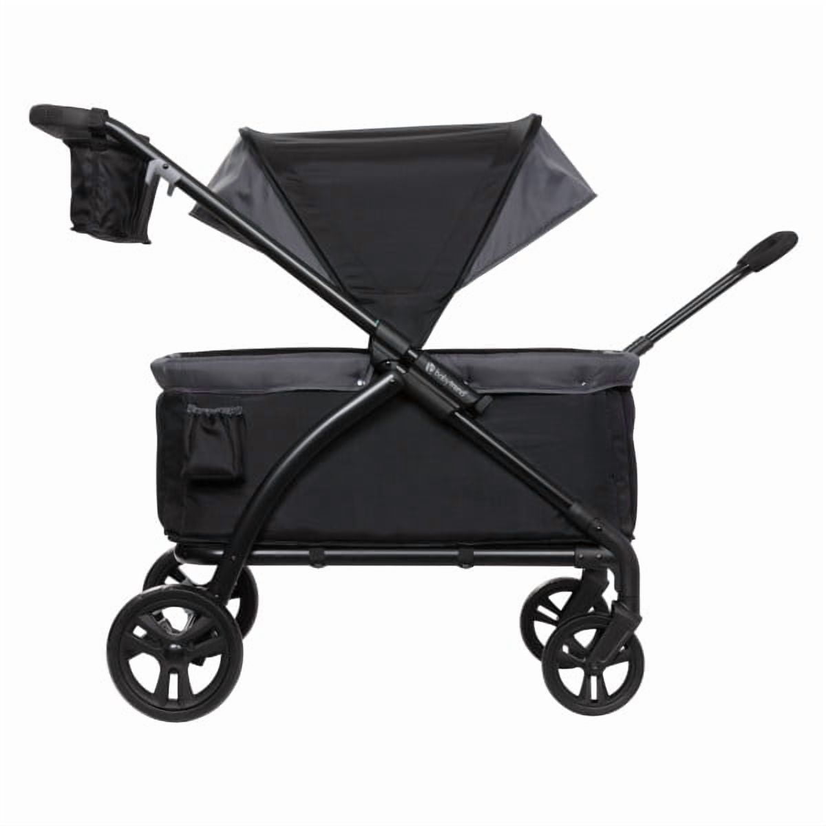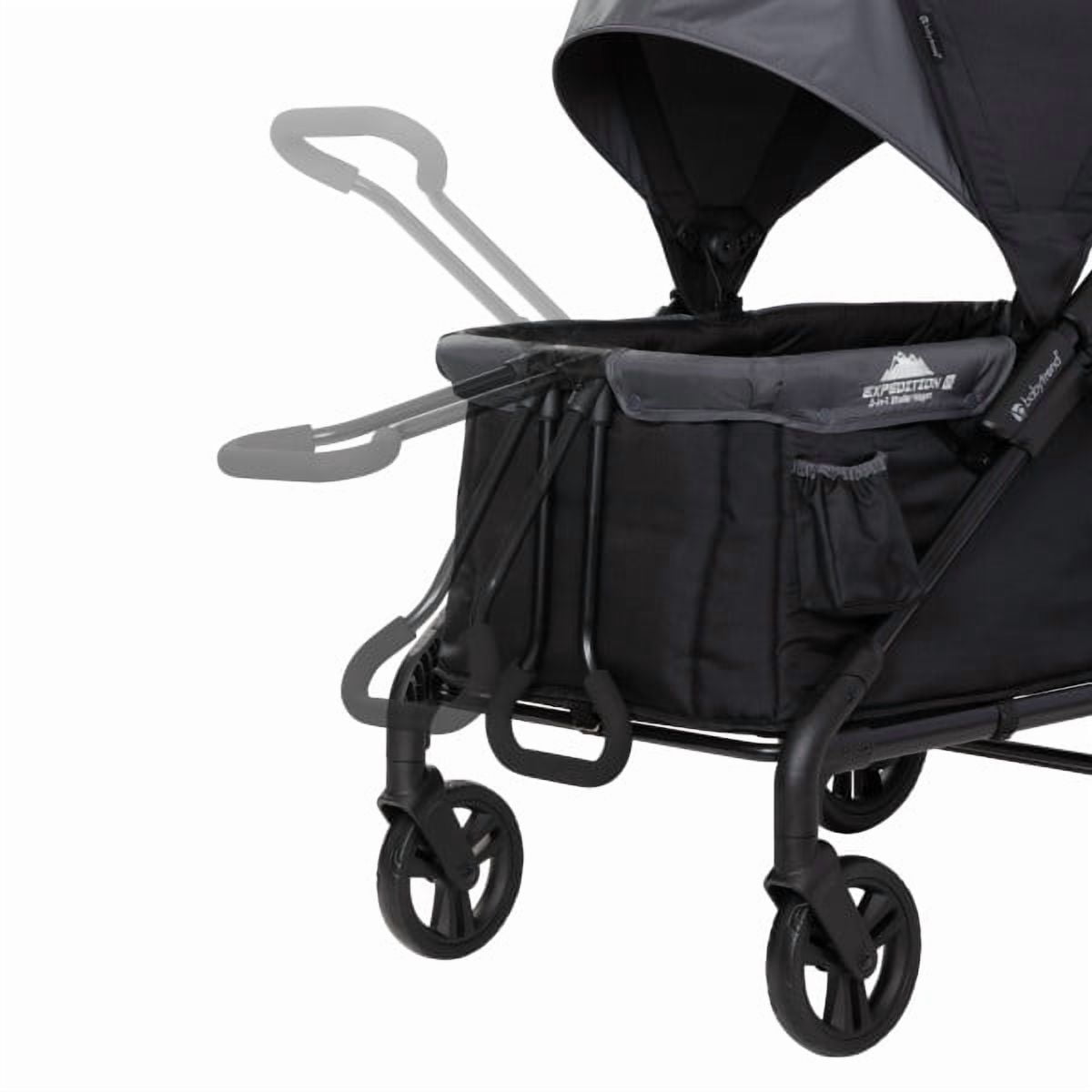 Enjoy your outdoor adventure with the exclusive Baby Trend® Expedition LTE 2-in-1 Stroller Wagon! Designed with utility, safety and style, the Expedition LTE 2-in-1 Stroller Wagon is for the family that loves outdoor activities and discovery. The super large cargo space with built-in seating and the two 3-point safety harness belt allows kids to explore with safety. The extra-large ratcheting canopy with extended visors keeps your little ones shaded from the harmful sun rays and rain. Parents will also love the ultimate storage solutions, which includes a parent organizer with two cup holders and center console with mesh pocket as well as two cup holders outside of the wagon. The Baby Trend® Expedition LTE 2-in-1 Stroller Wagon is equipped with 9″ rear wheels and durable 7″ front wheels for easy maneuverability. With the flip up/down pull handle, parents can easily transform the “push” stroller into a “pull” wagon mode. The compact flat fold allows the wagon to be easily stored and transported. This stroller wagon can hold up to 100lbs and is recommended for babies who can sit upright unassisted, toddlers and young children.
