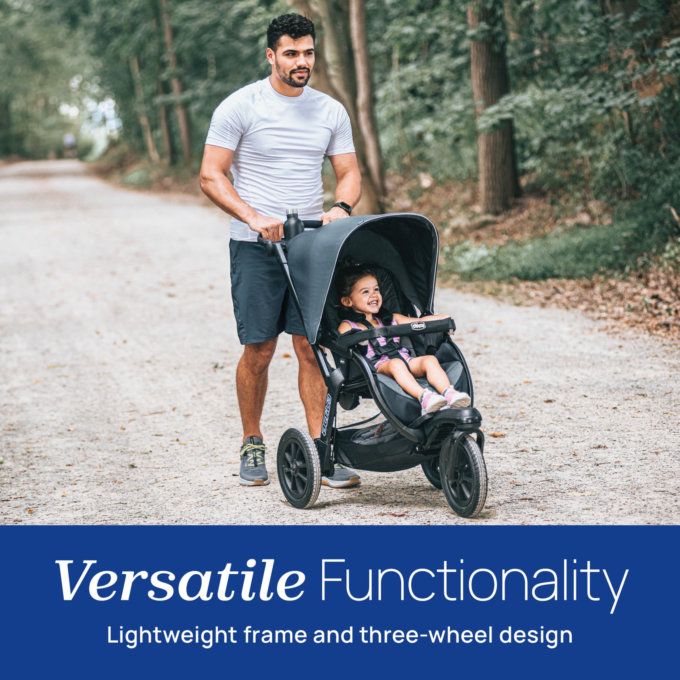 Combining the features of a full-size stroller and a jogger, the Activ3® Jogging Stroller offers versatile functionality at any pace. A lightweight aluminum frame and sleek three-wheel design are easy to maneuver, FlexCore® rear suspension adjusts for smooth or rugged terrains, and foam-filled tires perform like air-filled tires but require no maintenance. An extendable UPF 50+ canopy with peek-a-boo windows and reflective details offer parents peace of mind from dawn ‘til dusk.
