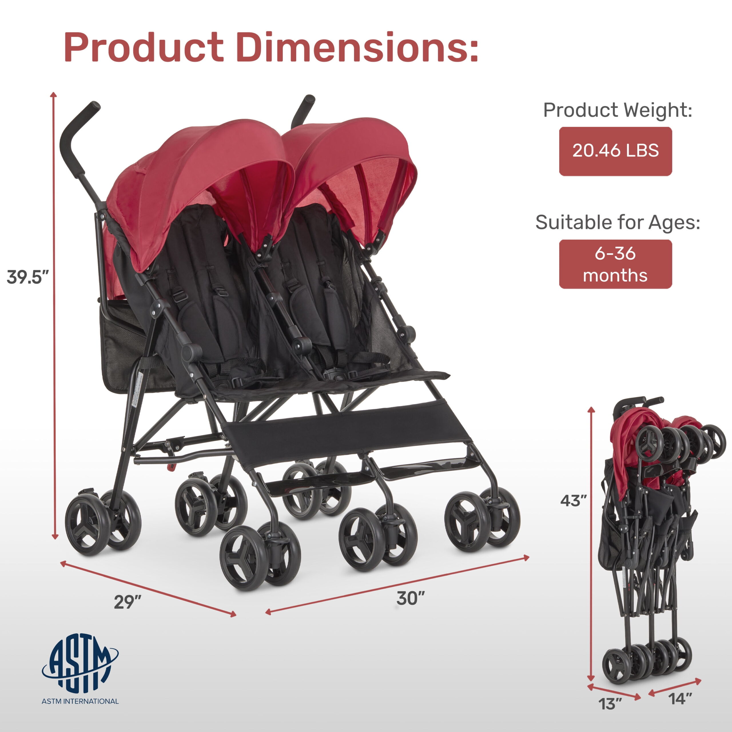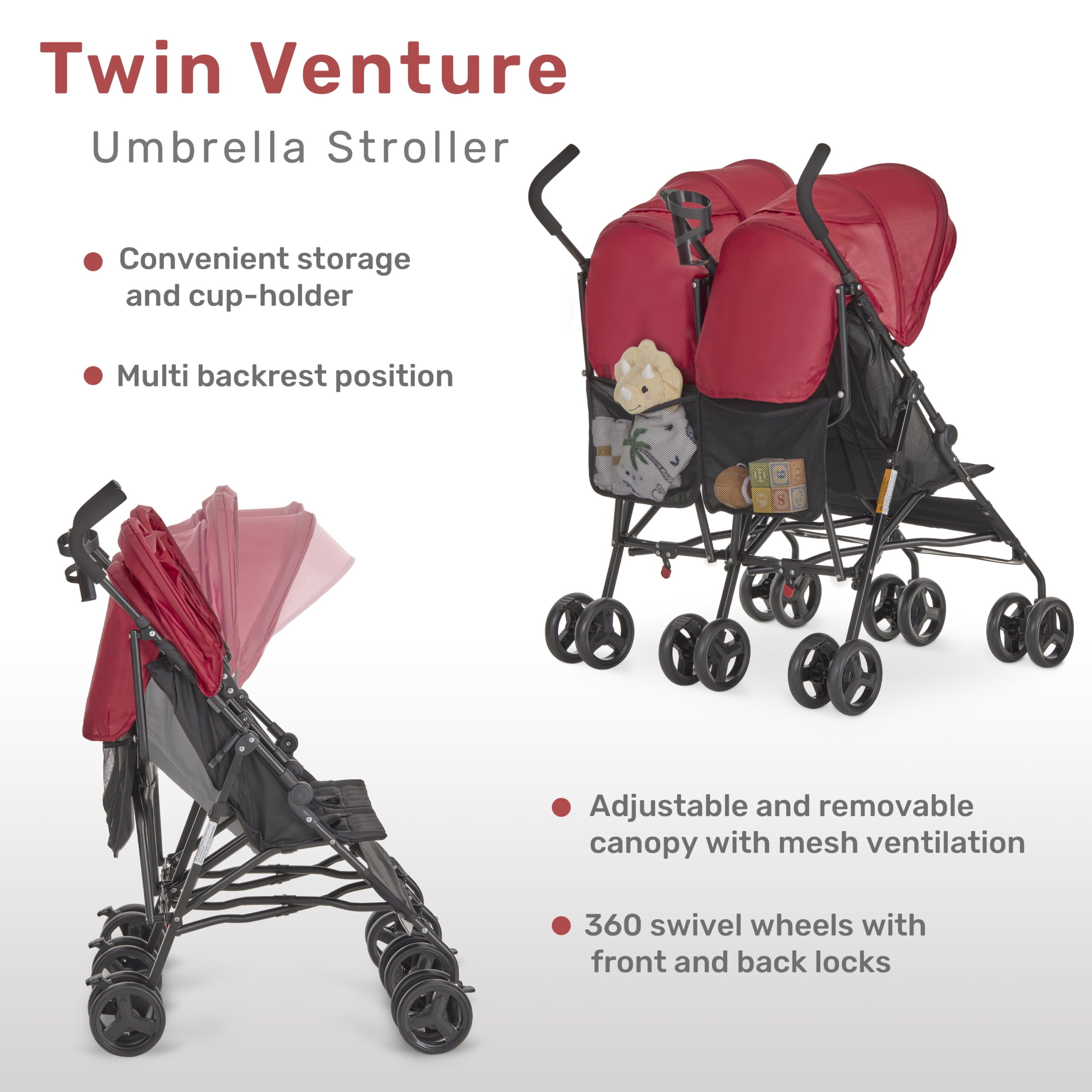 Dream On Me Twin Venture Umbrella Stroller, Red