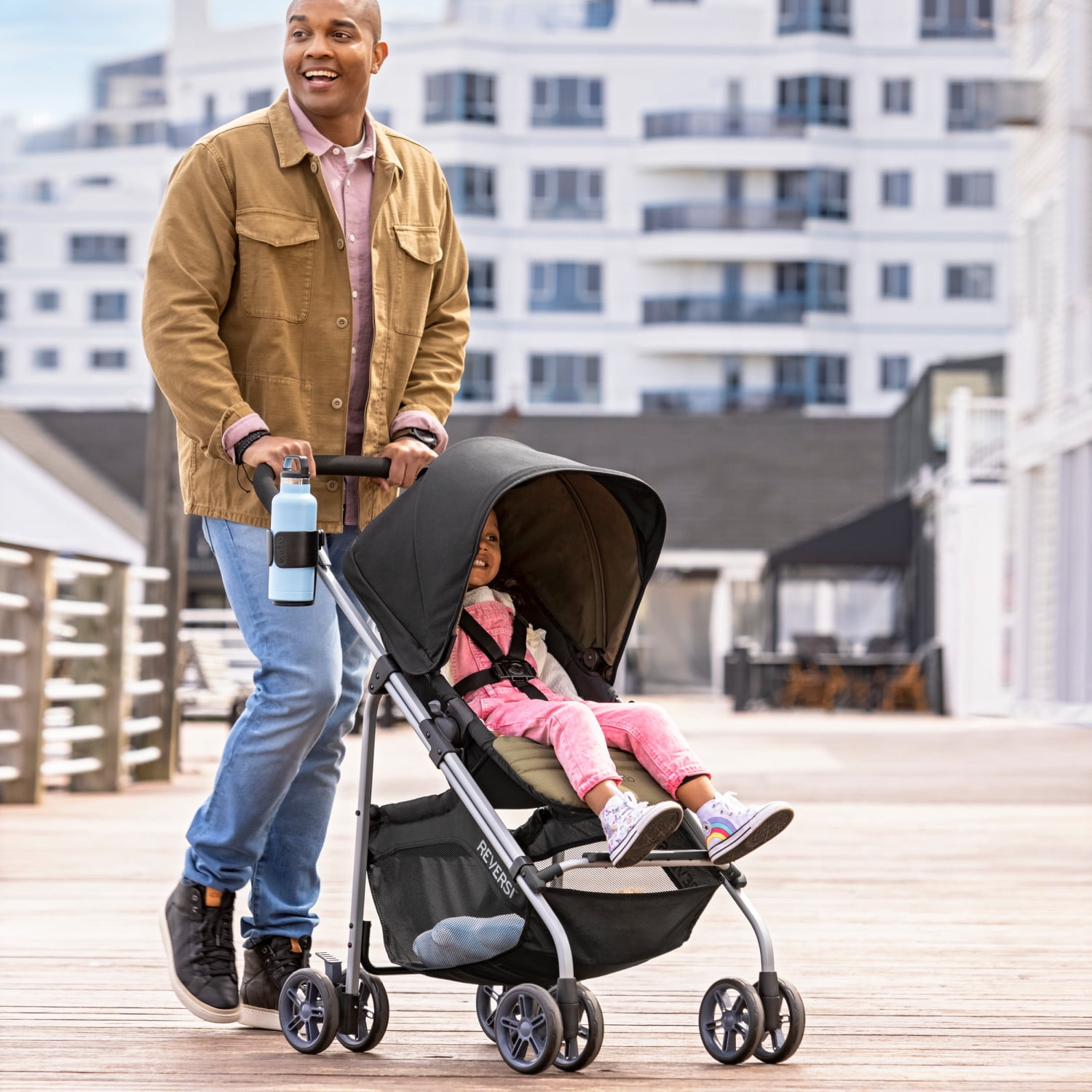 Versatility has always been the Evenflo® Reversi™ Reversible Stroller’s strong suit. And now, with a new look and upgraded features, it really steps up its game. Designed for a child up to 50 lb, this lightweight stroller makes you from baby stage to toddler years with a modular design that lets you customize your child’s view of the world. Share smiles and giggles with your child in parent-facing mode or face the stroller seat forward to open your little one’s eyes to the trees, birds, sky and neighborhood. Comes with new adapters (included with purchase) that make it easy to add on an Evenflo LiteMax™ or SafeMax™ Infant Car Seat (sold separately) to your Reversi. This stroller also takes it up a level when it comes to on-the-go convenience and maneuverability. Features include one-hand steering, a new extra-spacious storage basket, plus an extra-large, 2-panel canopy with pull-down visor for full coverage with a peek-a-boo window. The new flex-hold parent cup includes a locking tab to secure your drink. Done cruising for the day? Reversi gives you a hand with that, too. Using the trigger fold, Reversi folds to a compact, self-standing position in seconds, making it easy to pick up and pack away. Front to back, up and down, you’ll love how the new Reversi keeps pushing forward to fit your active lifestyle.