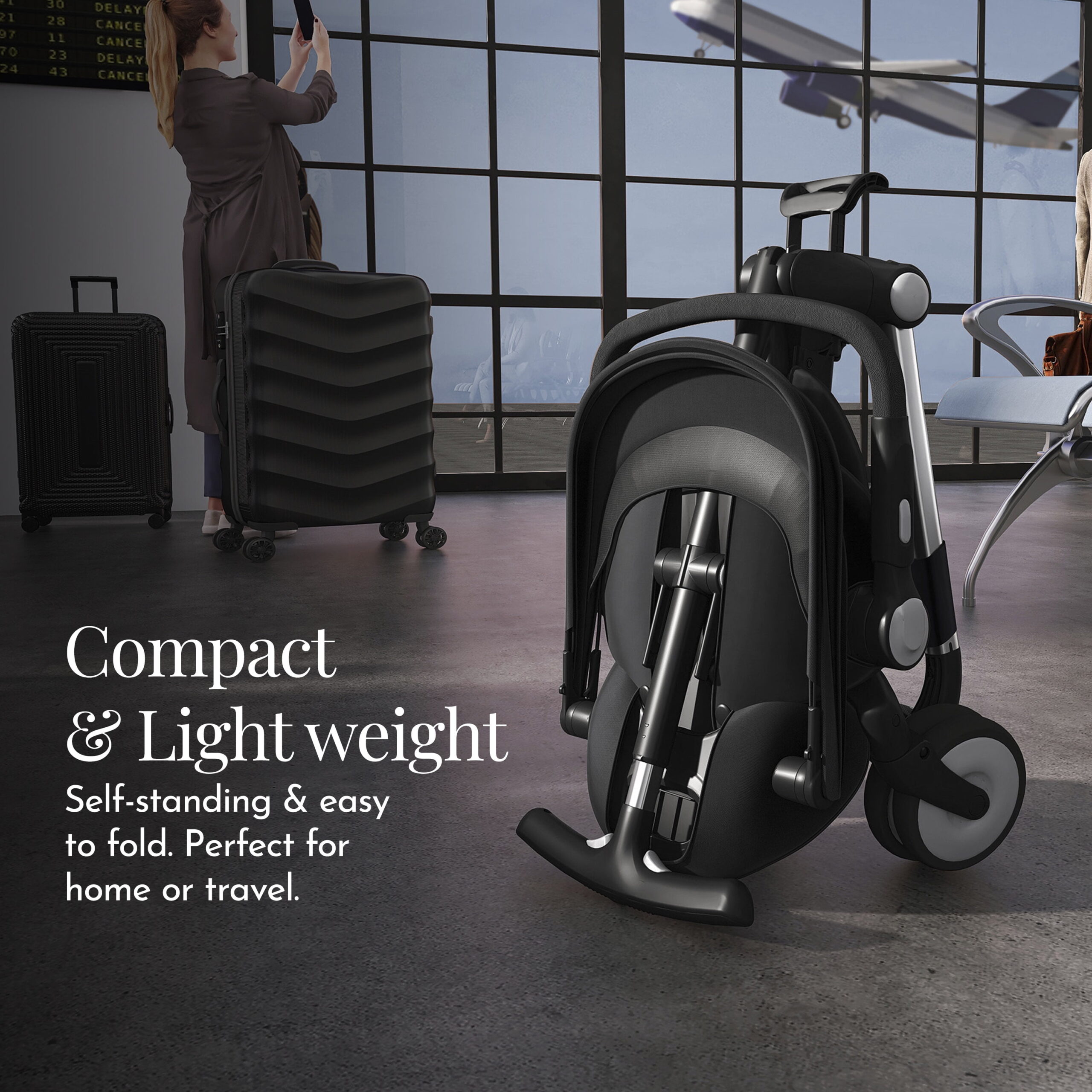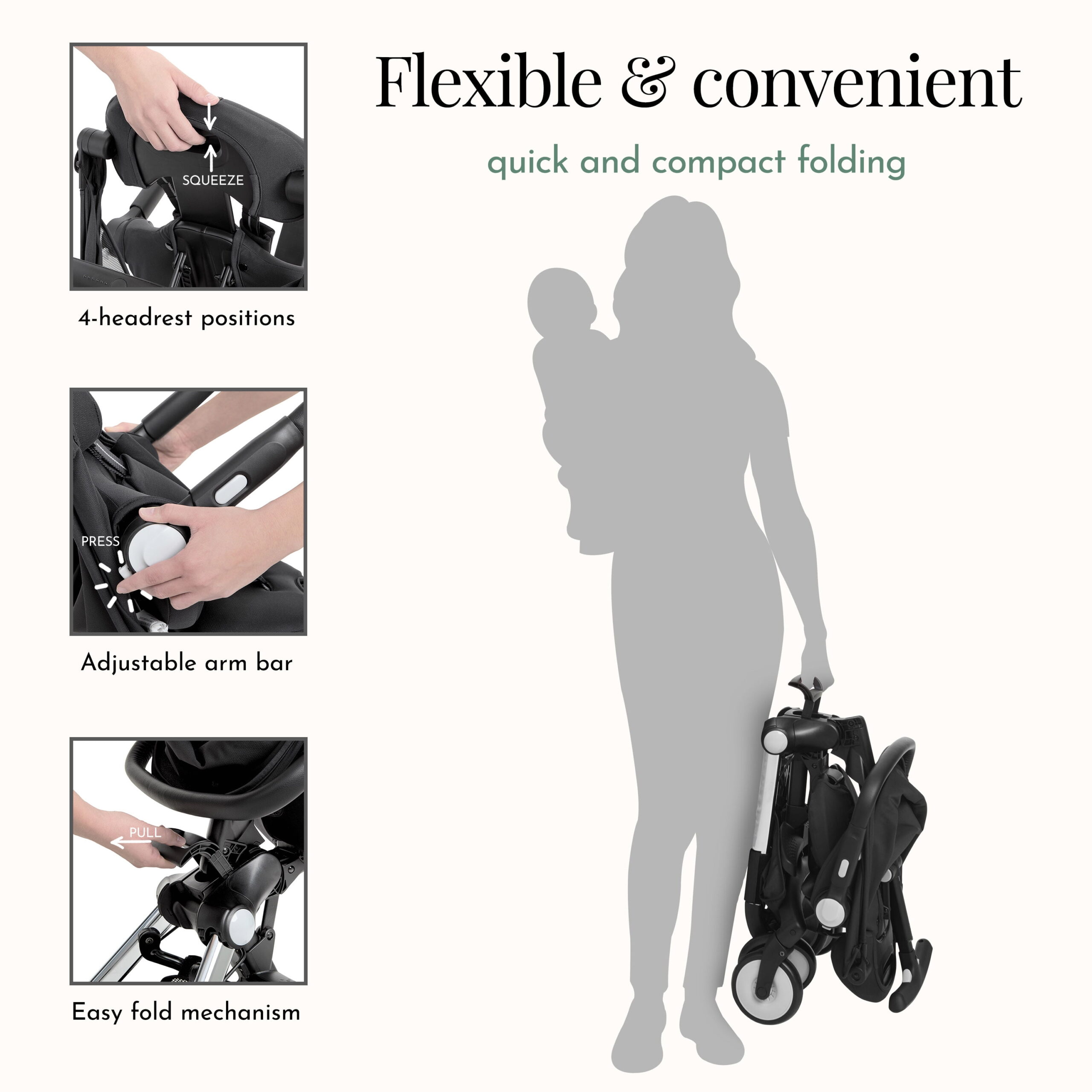 For parents looking for a stylish, practical, and safe ride for their little one, here’s the Evolur Velo Rider Stroller. This convenient stroller offers a 4-position adjustable headrest and a reclining seat to ensure your little one is always comfortable, while exploring or napping. For added protection, the stroller is equipped with a canopy to shield your baby from the sun, and the removable front bar makes getting in and out super easy. With its quick and one-hand fold feature, collapsing the Velo Rider is a breeze – no need to wrestle with complicated mechanisms. The stroller is designed for mobility and comes with a handy travel bag, making it incredibly easy to carry. Providing tool-free assembly and available in sleek black and white color options makes this a must-have. Product dimensions are 32.09″ L x 21.06″ W x 39.37” H, with a weight of 15 Lbs and a maximum weight limit of 33 Lbs.