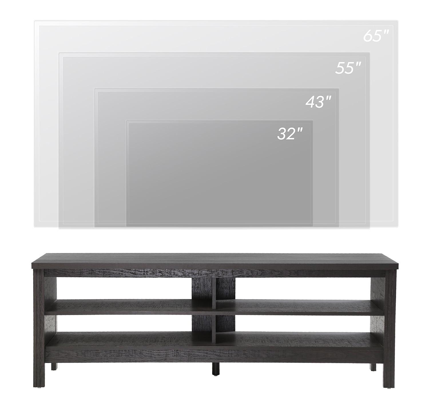 Large Capacity—This TV stand is perfect for TVs up to 65 inch TV.4 open shelves with big capacity allow you to storage the books, magazines, CDs and any other media or gaming devices.