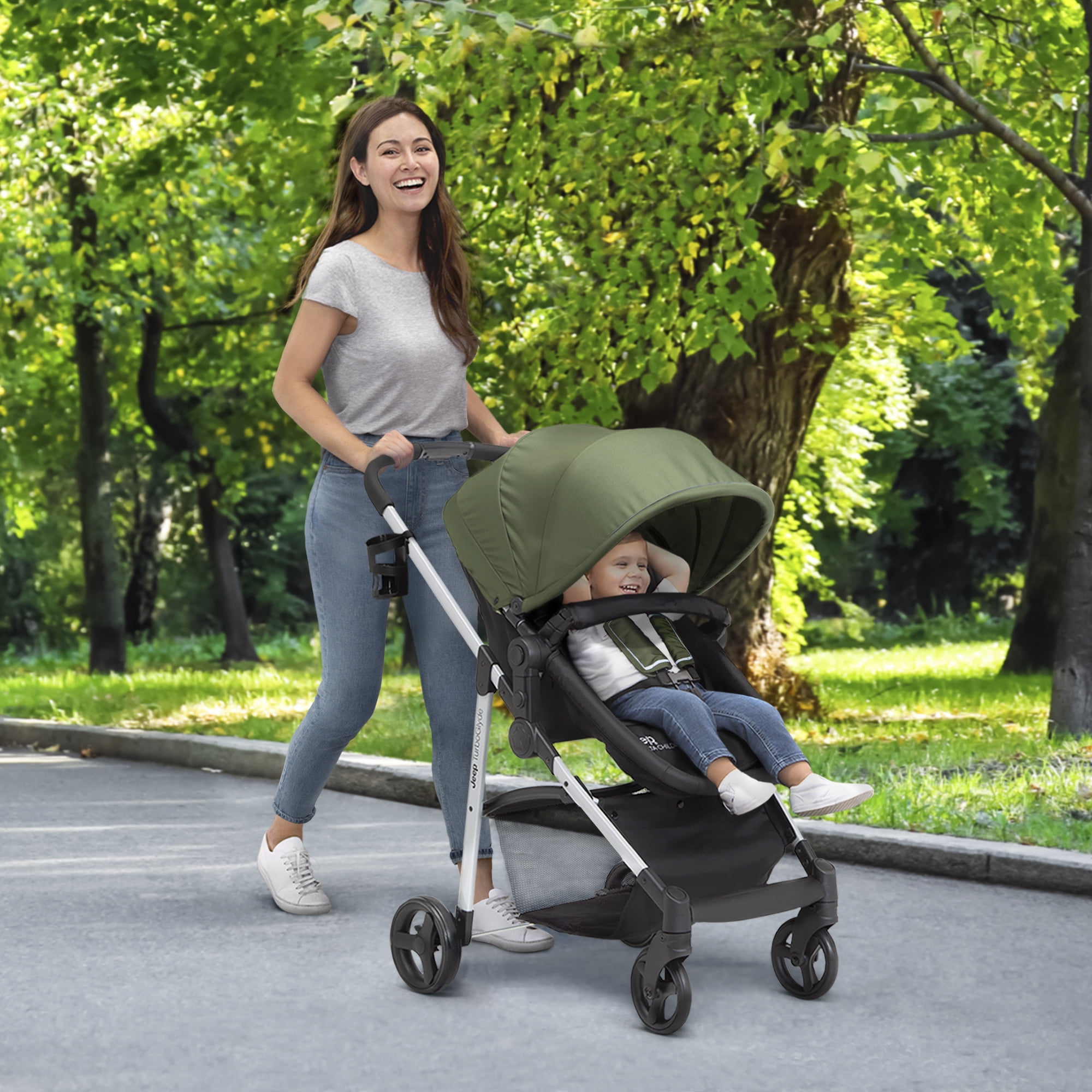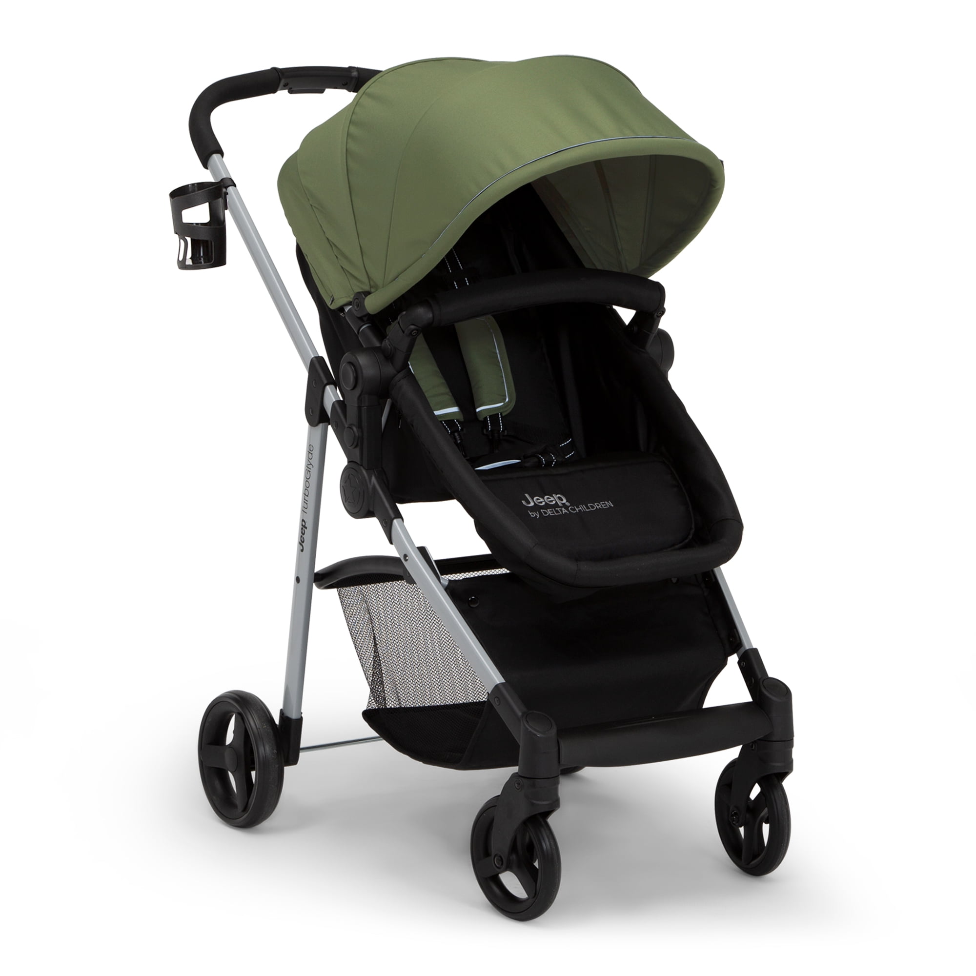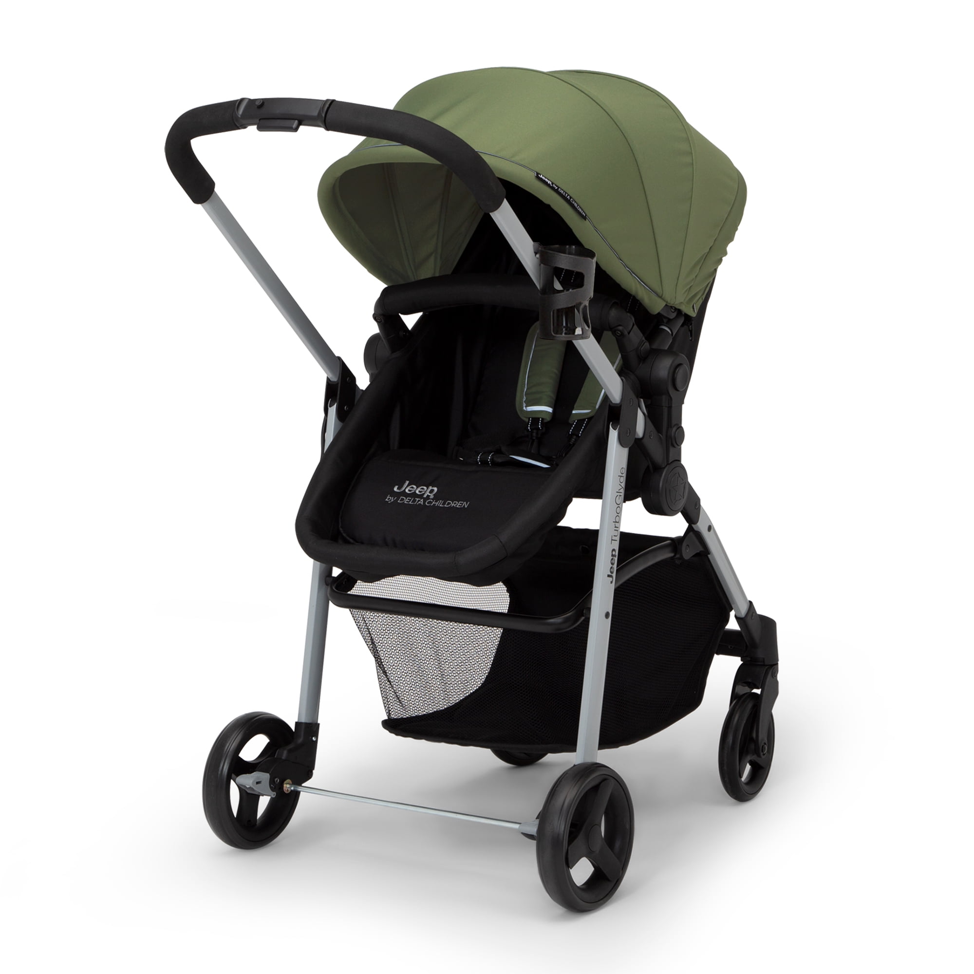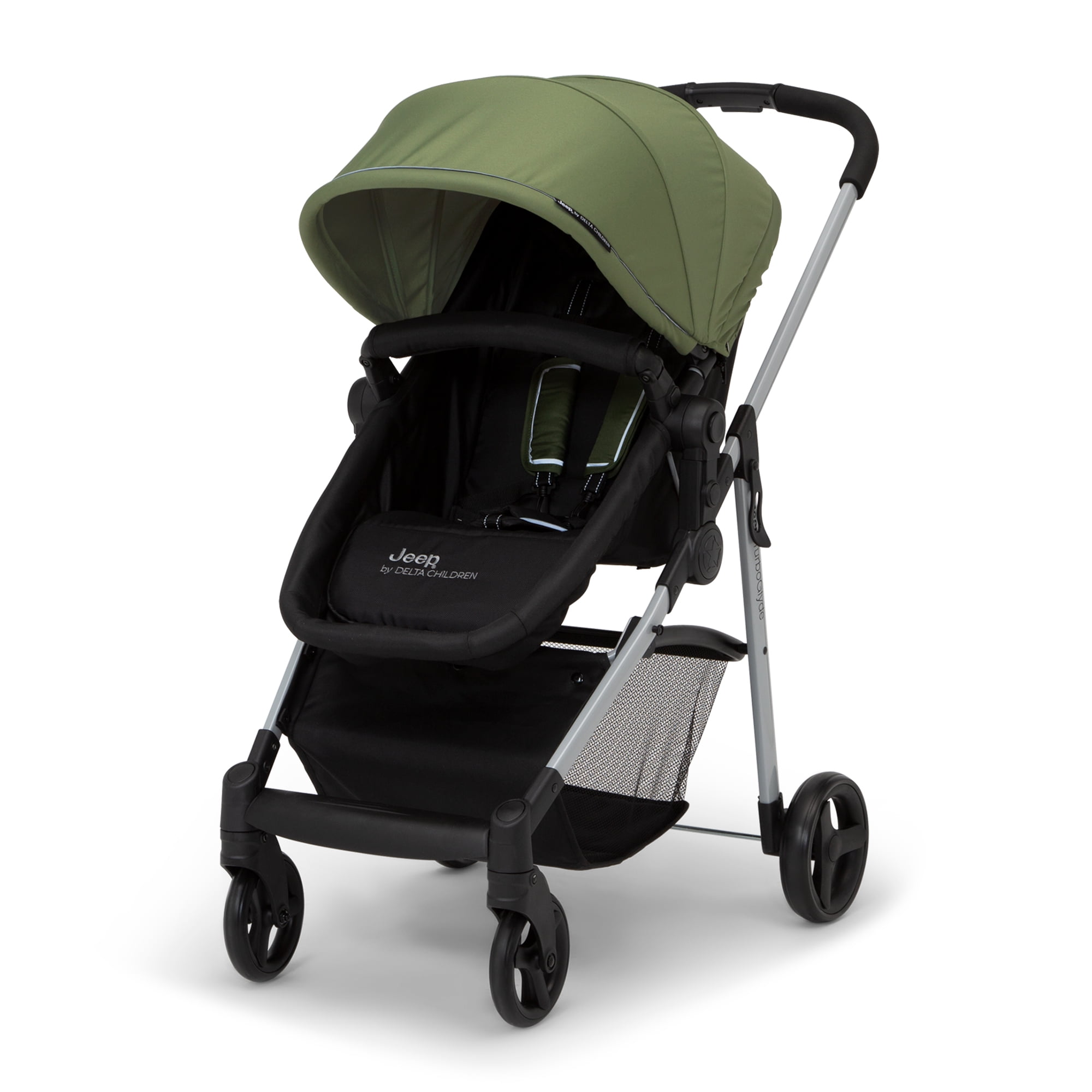 The Jeep TurboGlyde 2-in-1 Stroller by Delta Children will carry kids through all ages and stages. This incredibly versatile stroller easily transforms from infant carriage/bassinet to a reversible toddler stroller that allows baby to face you or the world. Created with the ever-growing child in mind, it features an adjustable position reclining seat, swing-out child bar and oversized, extendable canopy that blocks the sun. That’s not all, the Jeep TurboGlyde 2-in-1 Stroller opens and closes with one hand, its easy and compact fold makes traveling or everyday walks stress-free, even if you only have one free hand. Car seat compatibility: This stroller fits the following infant car seats (adapter #10030-2294 and car seats sold separately): Graco Snug Ride, Click Connect 30, 35, 40, Evenflo Nurture, Evenflo Embrace, Chicco KeyFit 30 and Britax B-Safe 35.