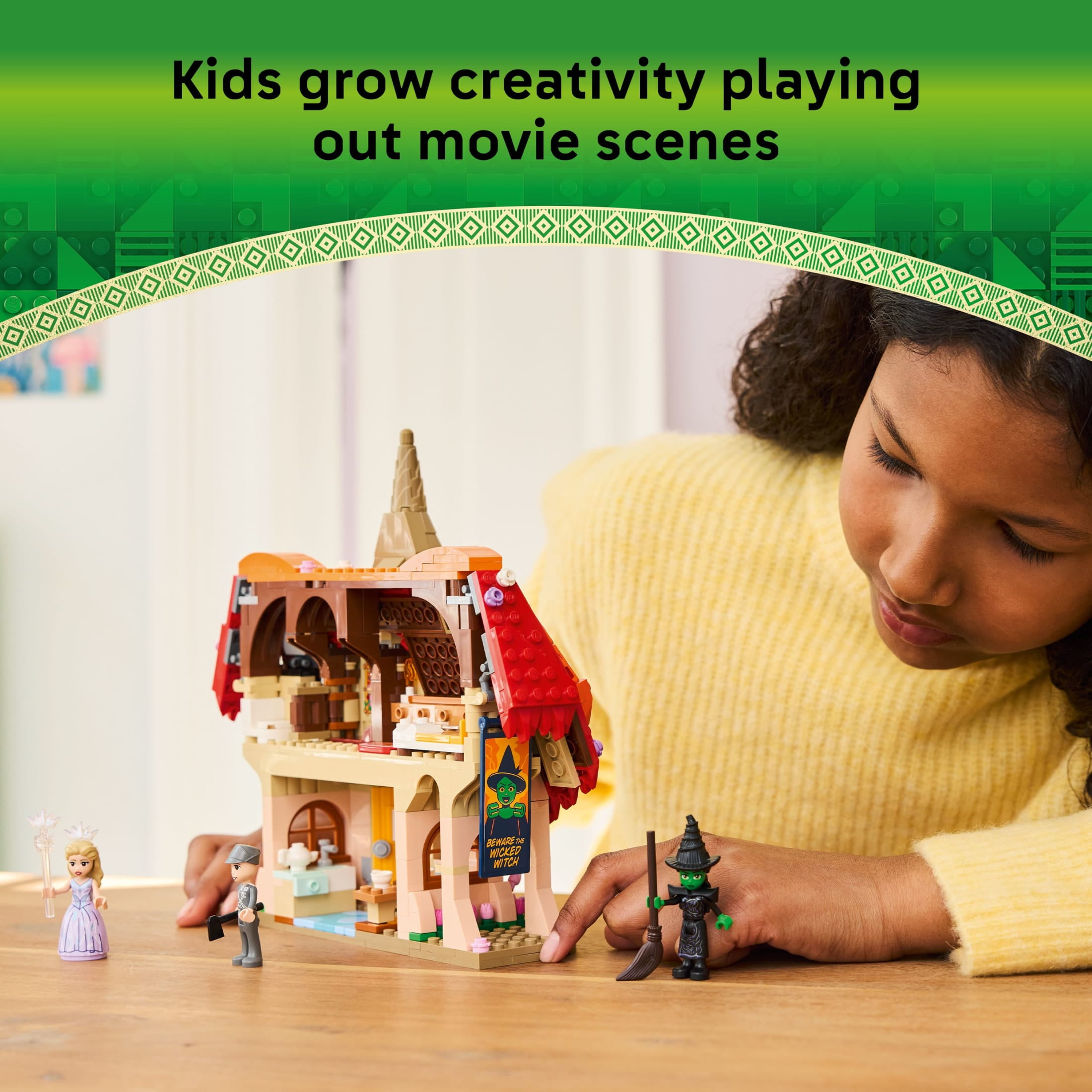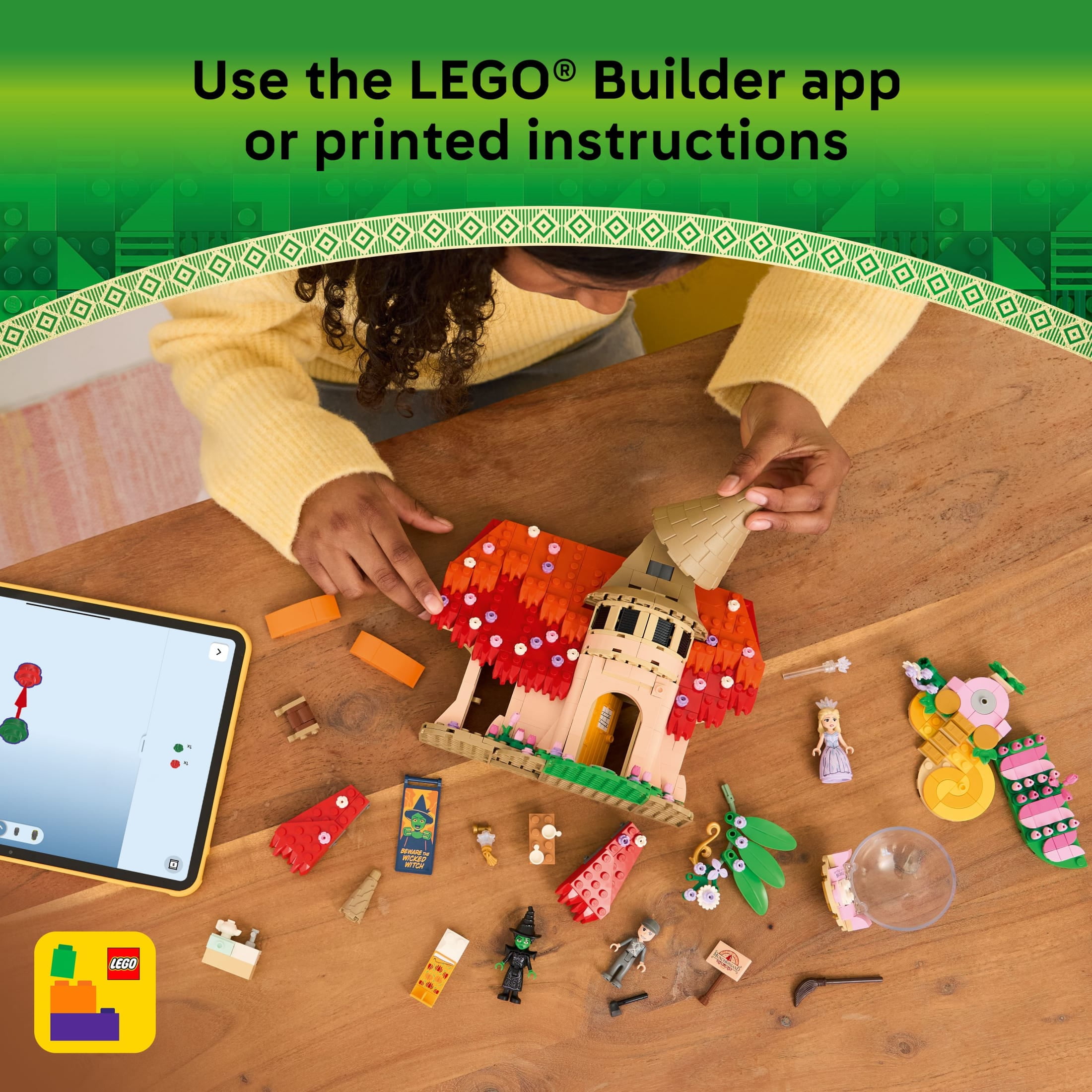 Give the gift of creative building and inspire kids ages 9 and up to recreate Wicked adventures with the Glinda & Elphaba Visit Munchkinland (75690) imagination toy. A unique gift idea for kids who love mini house building kits and Wicked merch, this set recreates the scene where Elphaba and Glinda return to Munchkinland. Wicked fans crown the Glinda minidoll “Glinda the Good” amid the tulips of Munchkinland then press the pedal, like she does in the movie, to surround her with the bubble. Or they imagine they’re Elphaba flying on her broomstick to Boq’s LEGO® toy Munchkin cottage. His LEGO house is topped by a pretty red brick-built roof, making this an eye-catching piece of kids’ room decor for girls and boys. Filled with toy accessories from the Wicked movies, this adventure gift is ideal for kids who love playhouse toys. Brimming with role-play toys, this fantasy gift has a kitchen, bedroom, den and bathroom with a sink, toilet and opening door. Set contains 744 pieces.