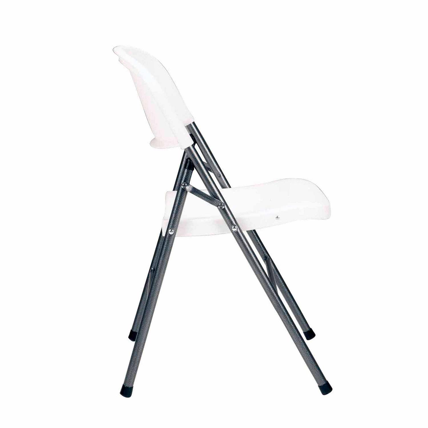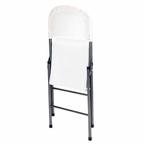 Mainstays Premium Resin Chairs add extra seating when you have guests or host a party. These resin chairs easily fold up for convenient storage when not in use. Bring them out when you have extra visitors, and use either indoors or outside. The contoured seats and backs make the chairs comfortable and supportive. They feature tube-in-tube and cross-brace construction for a reinforced frame that provides added durability and stability. The white speckle resin folding chairs include a vein powder-coated finish. These Mainstays Premium Resin Chairs are ideal for use in a small house or apartment where seating is limited or when you host large events in your home.