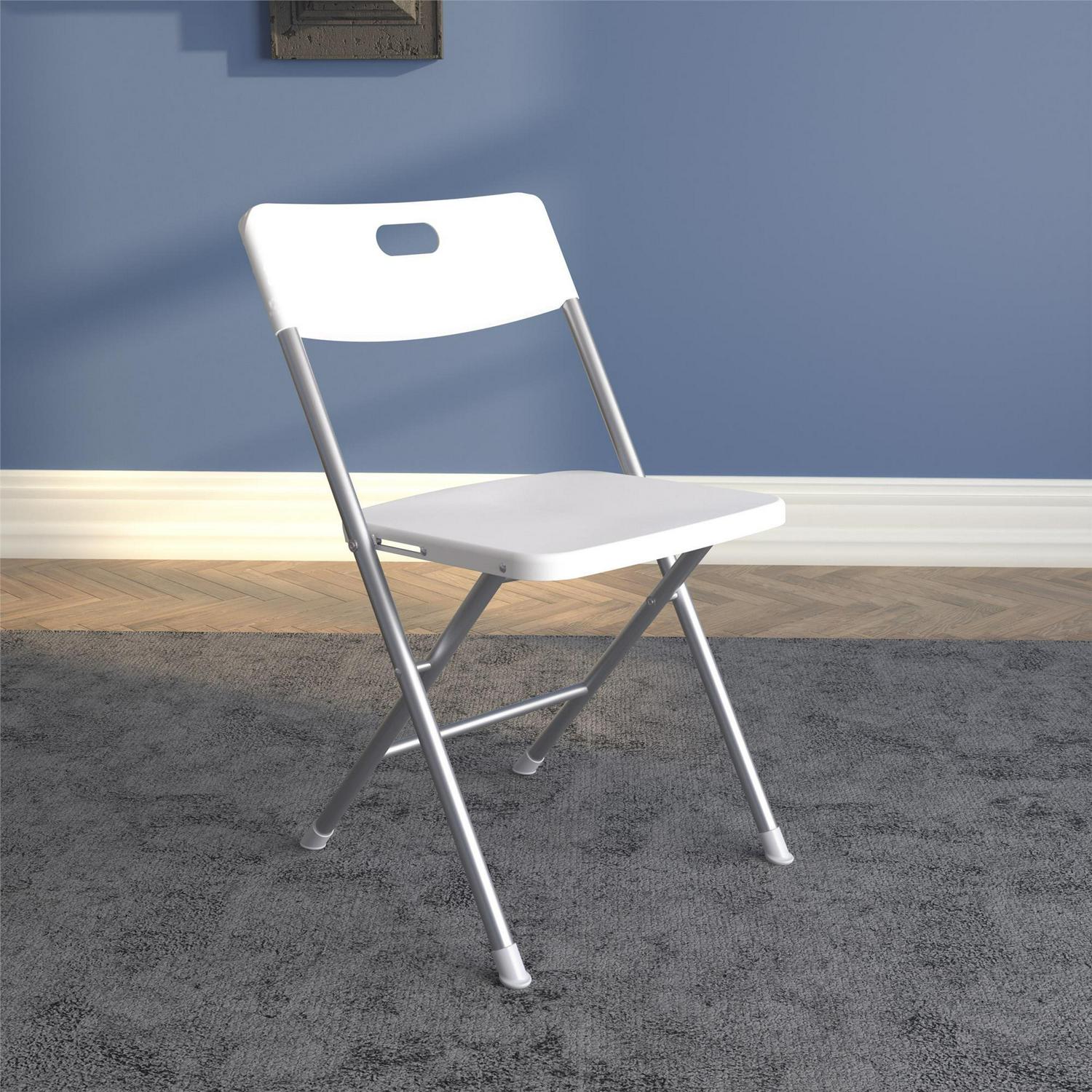 Make sure to reach for a Mainstays Resin Seat and Back Folding Chair when you need a seat for your office, everyday living space or next gathering. Featuring a platinum all-steel folding frame, this chair is both durable and long lasting with a 225-pound weight capacity rating. Not to mention, the easy to clean resin seat and back provides everyday comfort and is perfect for indoor and outdoor use. Designed to match any home or event decor, this chair is perfect for weddings, graduations, holiday parties, or simply everyday use. Its lightweight construction paired with its compact folding design makes it easy to transport and store. The non-marring legs tips protect any floor surface from scratches or scuffs. Comes standard with a 1one-year limited warranty, ensuring peace of mind. Next time you are looking for a chair for yourself or extra seating for guests, reach for the Mainstays Resin Seat and Back Folding Chair.