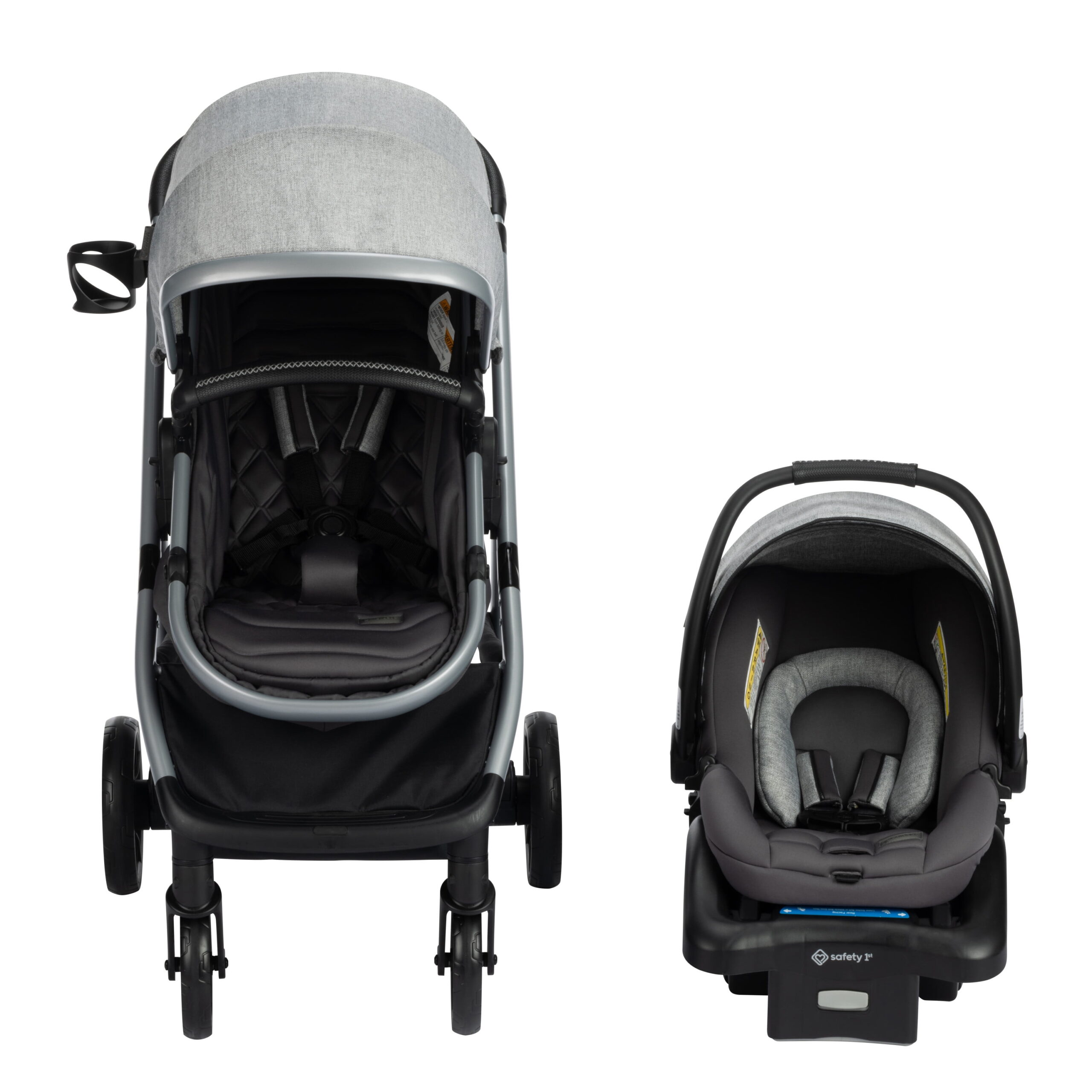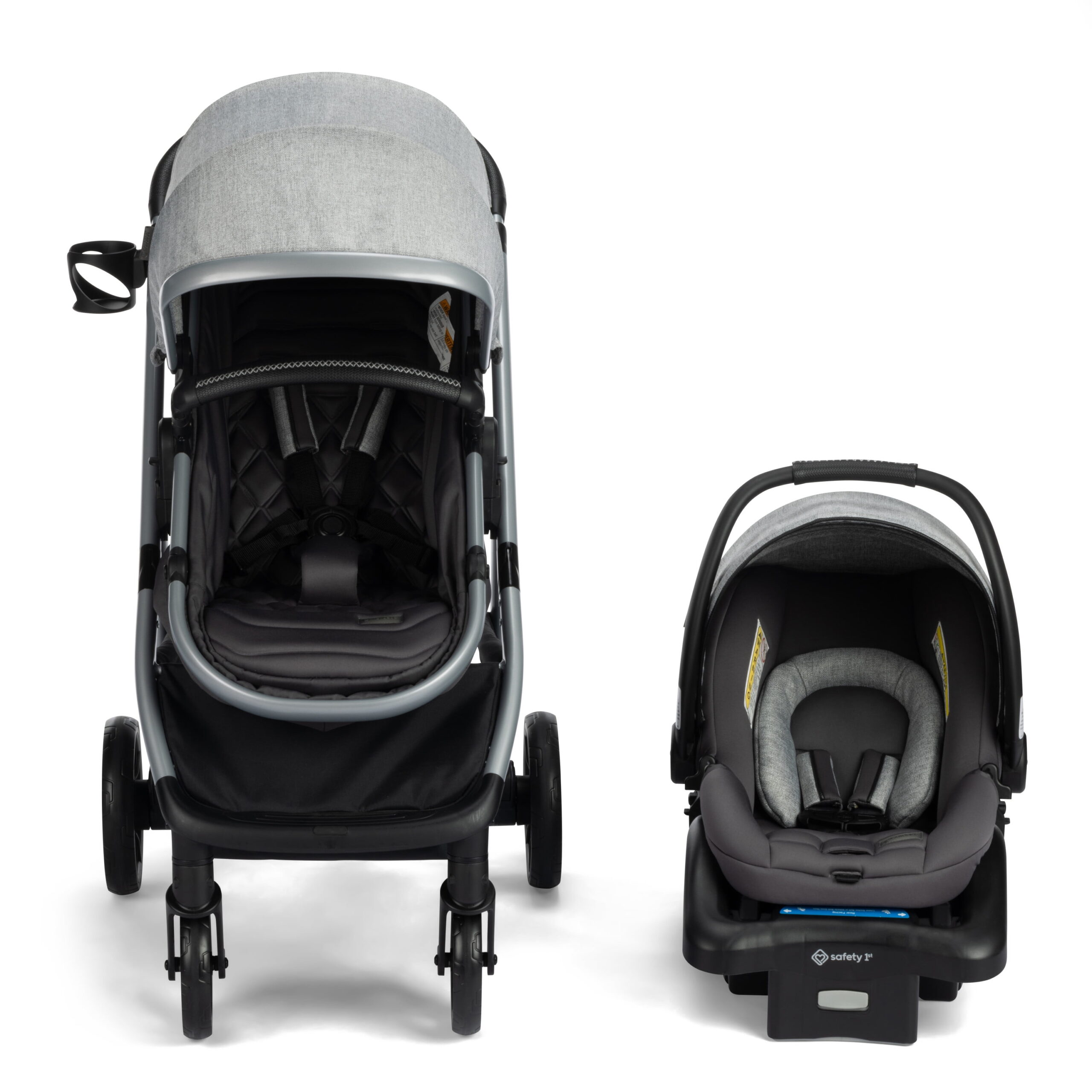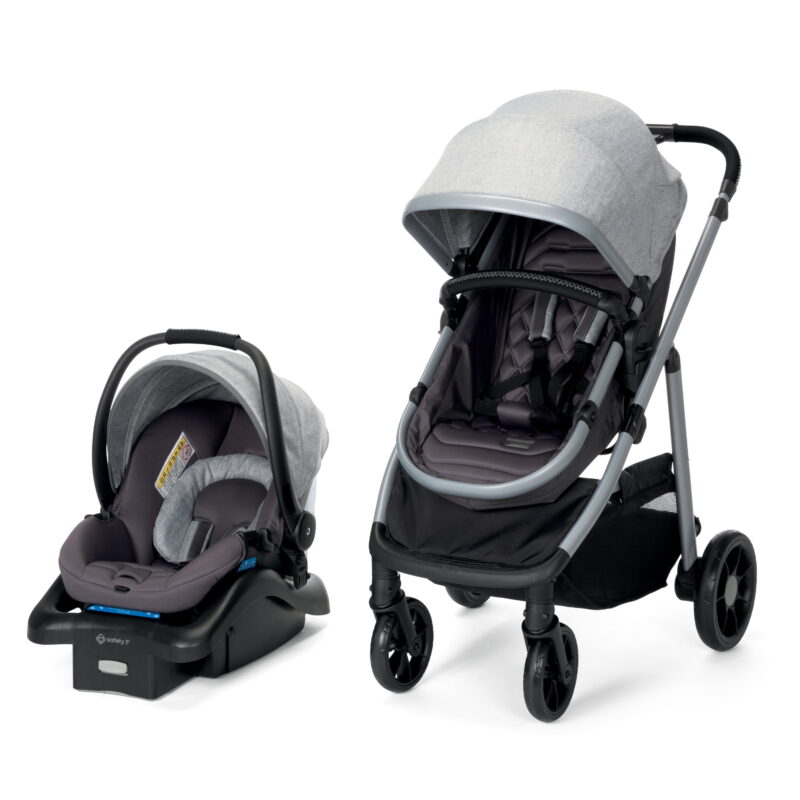 Both the stroller and the included Safety 1st® onBoard™ LTX Infant Car Seat feature a memory-foam comfort welded seat to keep baby cozy, and the antibacterial treatment on the faux-leather handles gives you added peace of mind. The Monbébé 6-in-1 Modular Travel System stroller is JPMA certified and features a lightweight aluminum frame as well as a telescoping handle for easy and comfortable maneuverability. The stroller also folds flat with removable back wheels for compact storage. Assembled weight: 34.52 lbs.