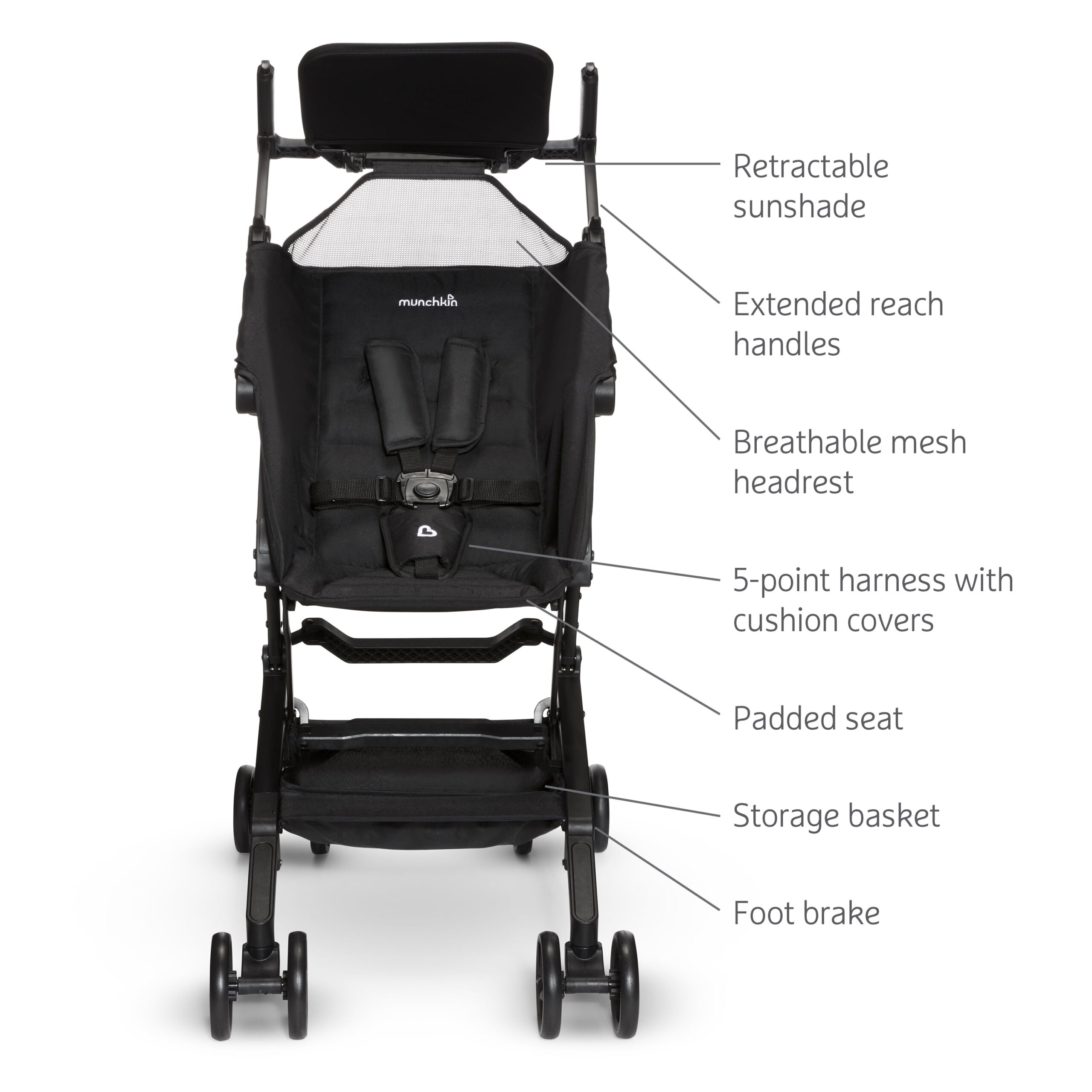 Being out and about with little ones means having your hands full in every possible way. Leave the bulky gear behind and head out with Munchkin Sparrow instead! This ultra compact folding toddler stroller is perfect for your precious cargo, whether you’re jet setting, road tripping, or just running errands around town. One of the smallest travel strollers on the market, it easily fits overhead compartments on planes and transports kids safely upon arrival. And with the easy-zip carrying bag, you can skip stroller parking at places like the amusement park, too. Sparrow opens with a forward fold motion that’s super intuitive to use and comes fully assembled and ready to go. Keep one in the car to lighten your load and make every day an adventure!