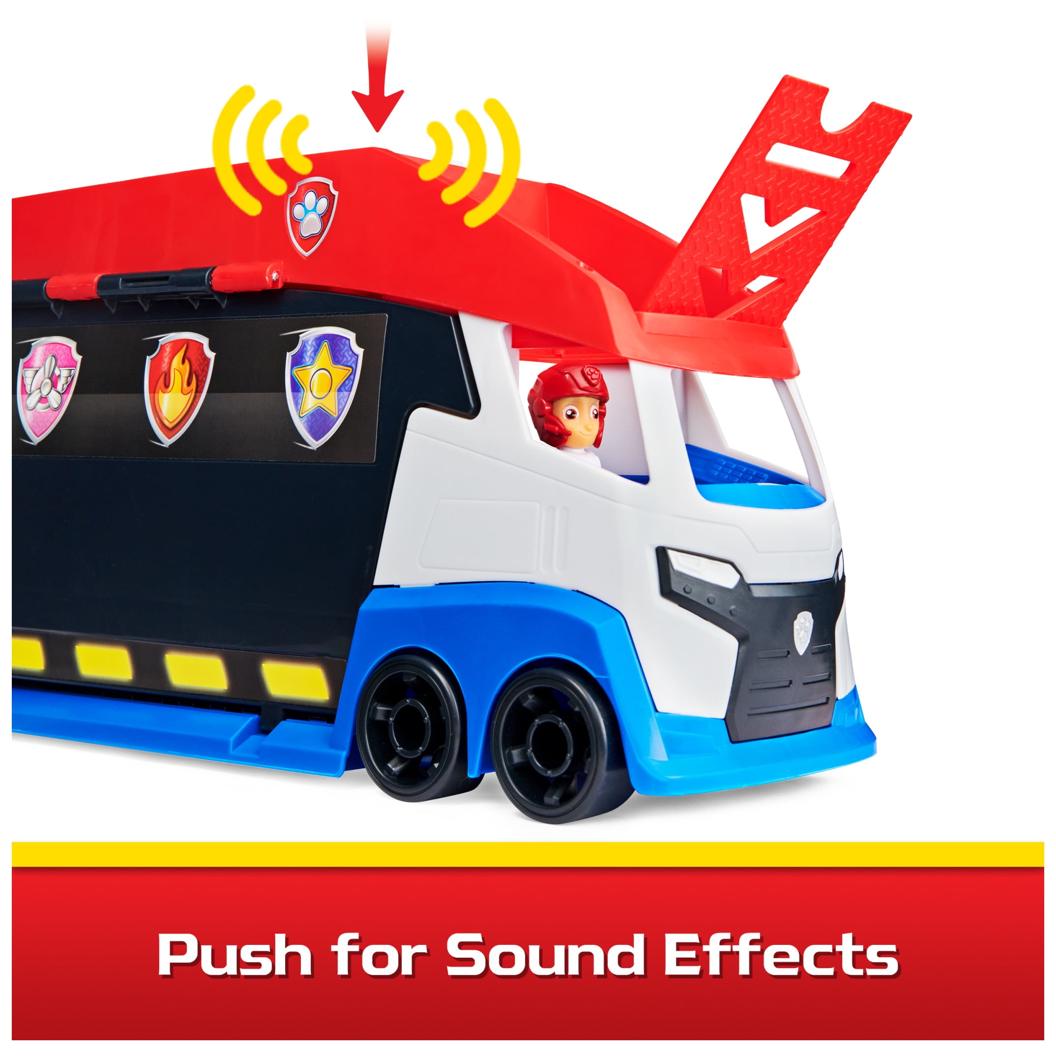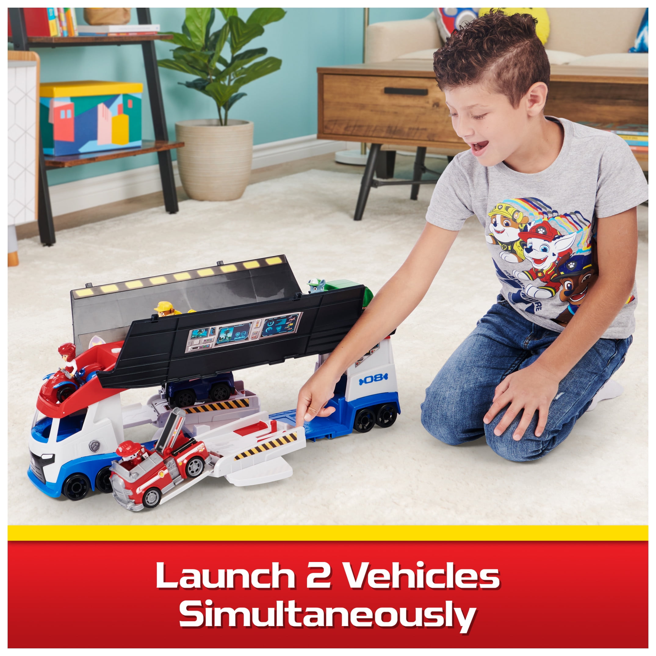 Create thrilling rescue missions with Ryder and the PAW Patrol pups in the action-packed PAW Patroller team vehicle. This set includes Ryder, Chase, Marshall, Skye, Rubble, Rocky & Zuma, along with their respective PAW Patrol vehicles! The Patroller features transforming doors, dual vehicle launchers, and thrilling sound effects, for an immersive experience! When trouble calls, get ready to roll to the rescue. Load 2 vehicles into the launcher, push the button on the side to raise the doors, then pull the lever to launch! Press the button on the roof to activate the sound effects! PAW Patrol toys for boys & girls are the ideal gifts for kids who are fans of the show, to foster imaginative pretend play and enhance fine motor skills. Relive cherished moments from PAW Patrol seasons, such as the Mighty Pups and the PAW Patrol Movie or create entirely new adventures with individual PAW Patrol pups and their respective toy cars (each sold separately). Elevate the excitement with the complete Rescue Wheels team, including PAW Patrol vehicles, action figures and the all-new PAW Patrol Tower HQ for endless hours of turbo-charged adventures inspired by the series!