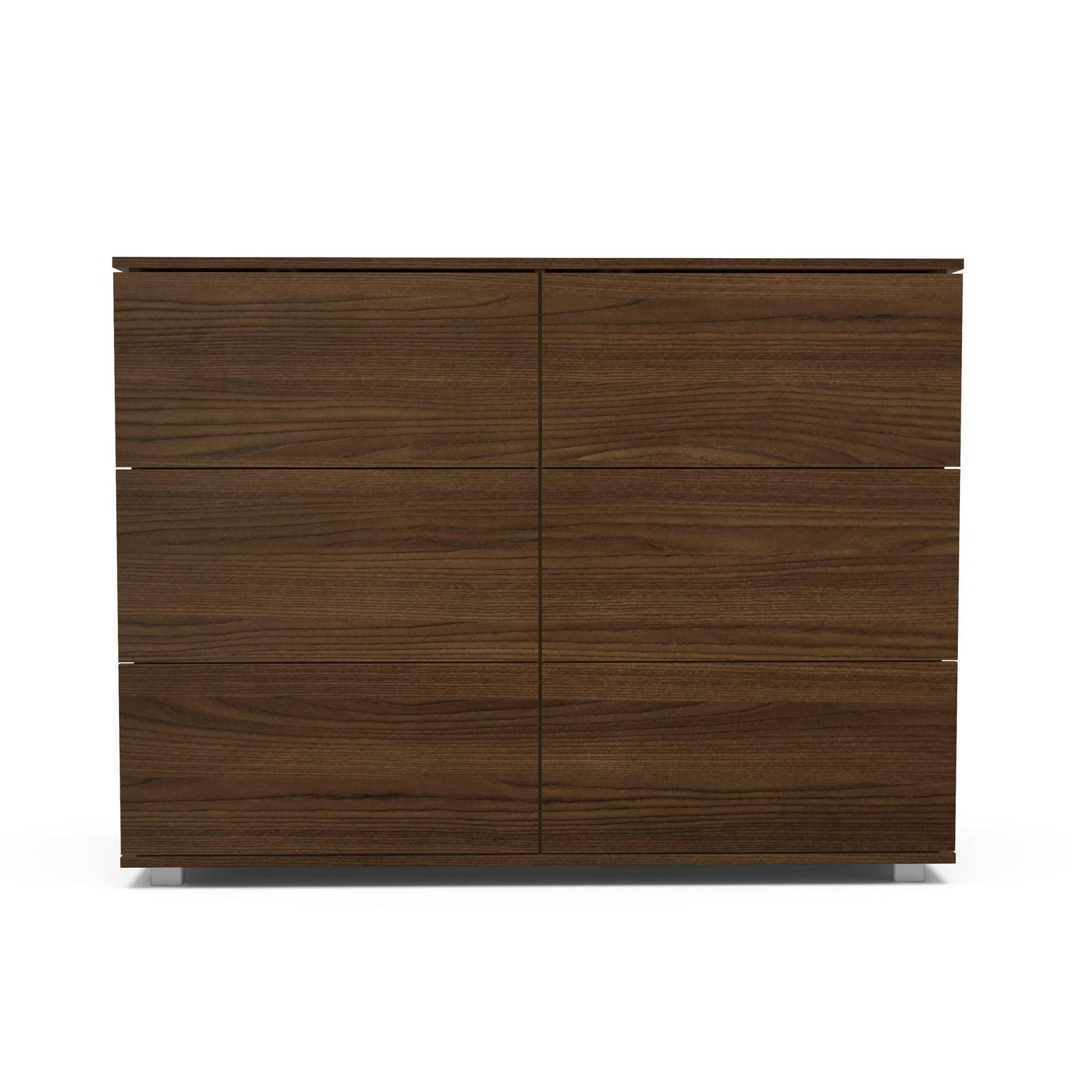 Polifurniture Madison Modern 6 Drawer Wood Double Dresser, Walnut