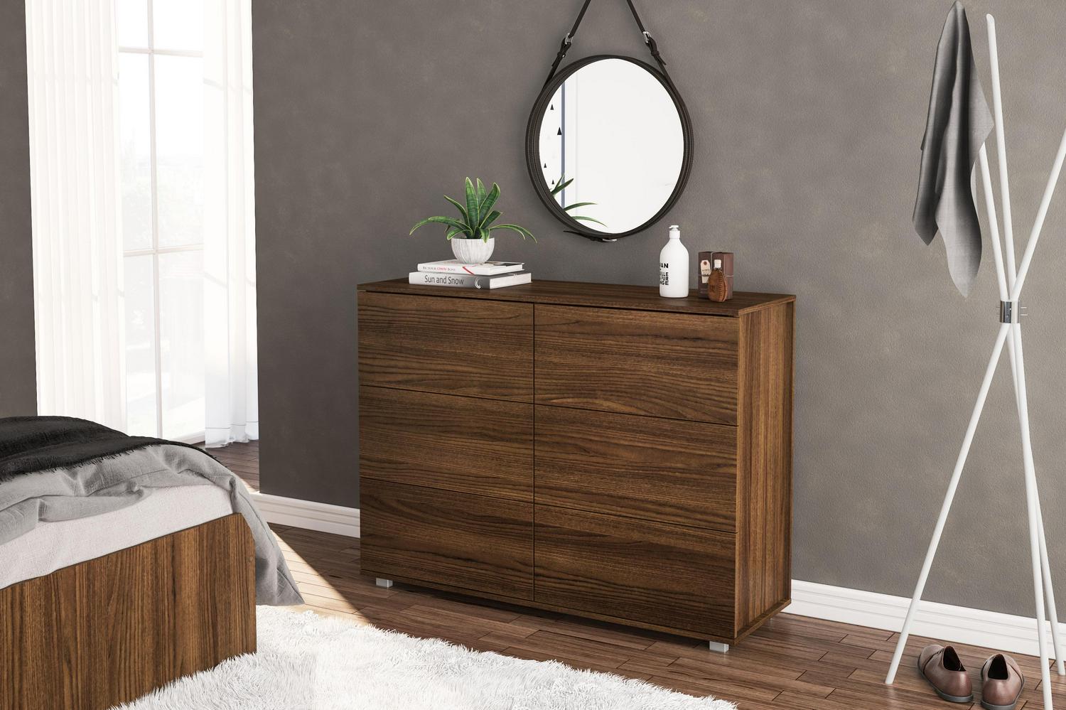 Add storage space and style to your bedroom with the Madison Modern 6 Drawer Double Dresser from Polifurniture. This modern dresser will fit with a variety of decors and is available in multiple color finishes. It s constructed from engineered wood with a durable melamine finish to protect against everyday use. It has 6 spacious drawers to keep all your personal belonging neat and organized. Pair with any of the items in Polifurniture’s Madison Collection for a complete bedroom set. Available in multiple finishes. Assembly required; instructions provided. 90 day limited warranty. Assembled dimensions: 47.25 in. L x 15.75 in. D x 35.43 in. H