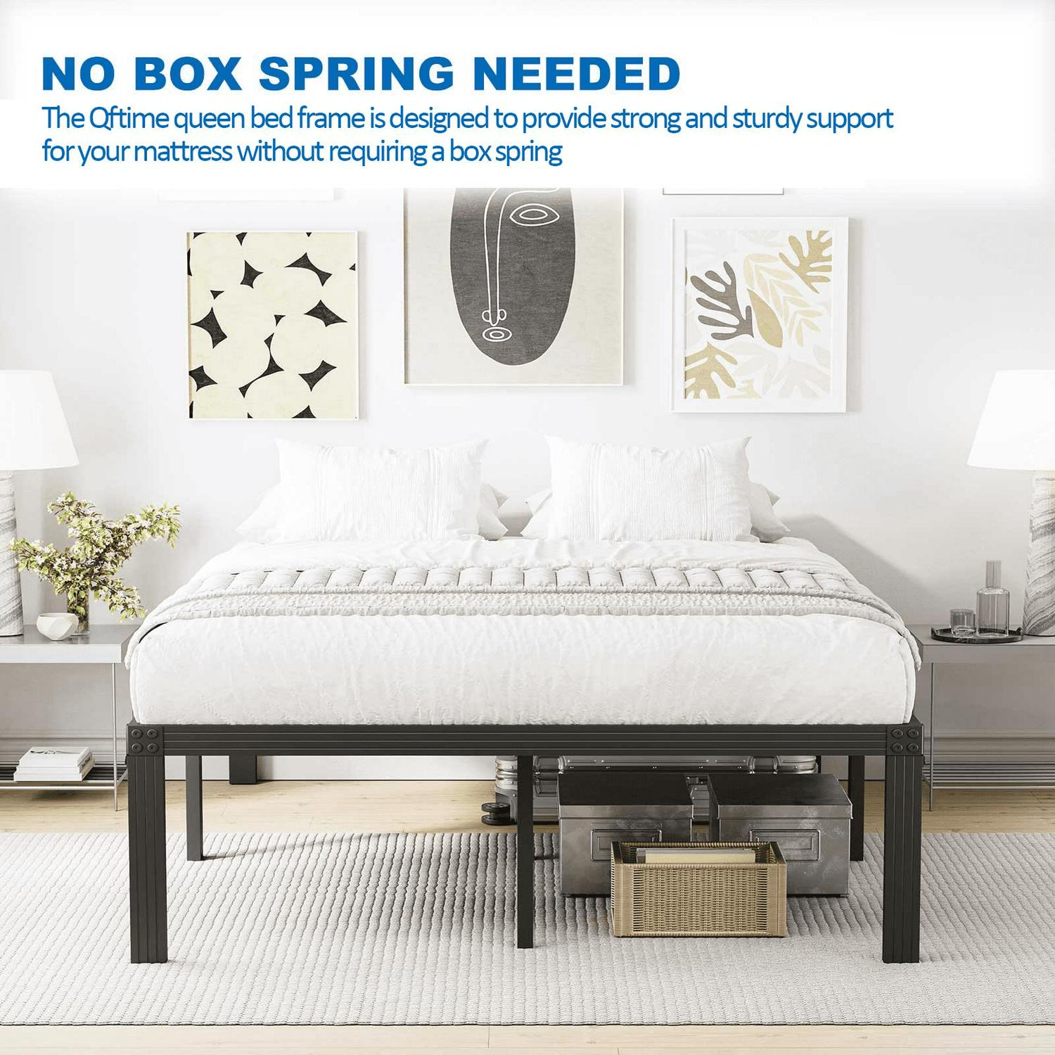 QFTIME 14 Queen Metal Bed Frame with Steel Slats, Heavy Duty Mattress Foundation