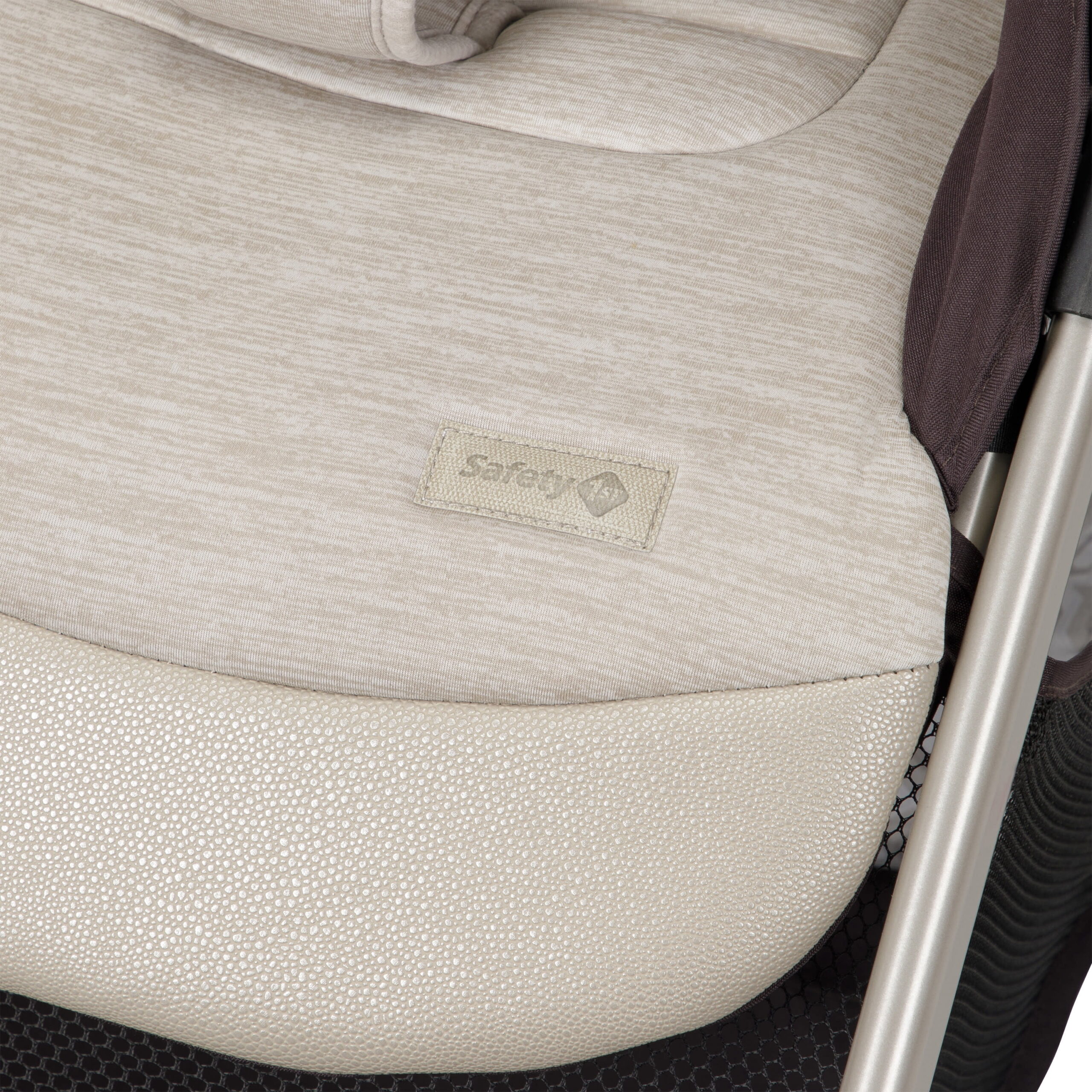 The Smooth Ride QCM Travel System makes strolling easy with its fast, lift-to-fold handle that now features a faux-leather wrap with antibacterial treatment. The included onBoard LT Infant Car Seat is designed for babies from 4–30 lbs. with a comfort and security in mind. The car seat and stroller seats are made with plush memory foam for a cozy ride both in and out of the car. The agile wheels provide maximum maneuverability around corners, while the flip-flop-friendly brakes make it simple to put the stroller into park. There’s plenty of storage, too. The parent and child trays are perfect for smaller items, while the extra-large storage basket works well for larger items. The car seat keeps your baby safe with SIP and LATCH compatibility for quick and easy installation in the car.